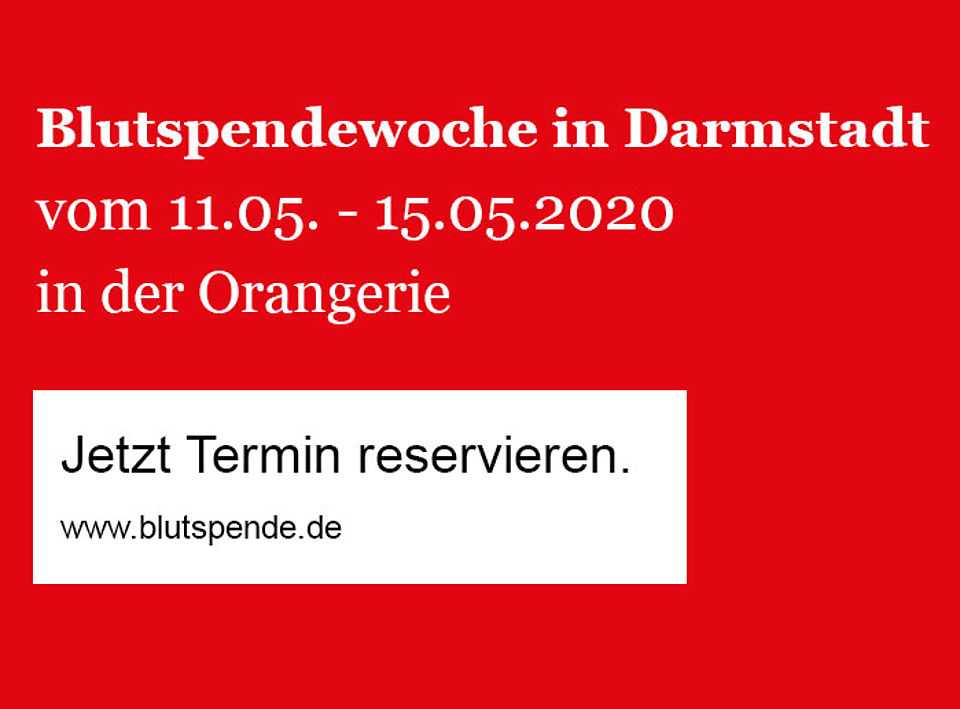 Blutspendewoche in der Darmstädter Orangerie statt. Die Spendezeit ist jeweils von 13-18 Uhr.