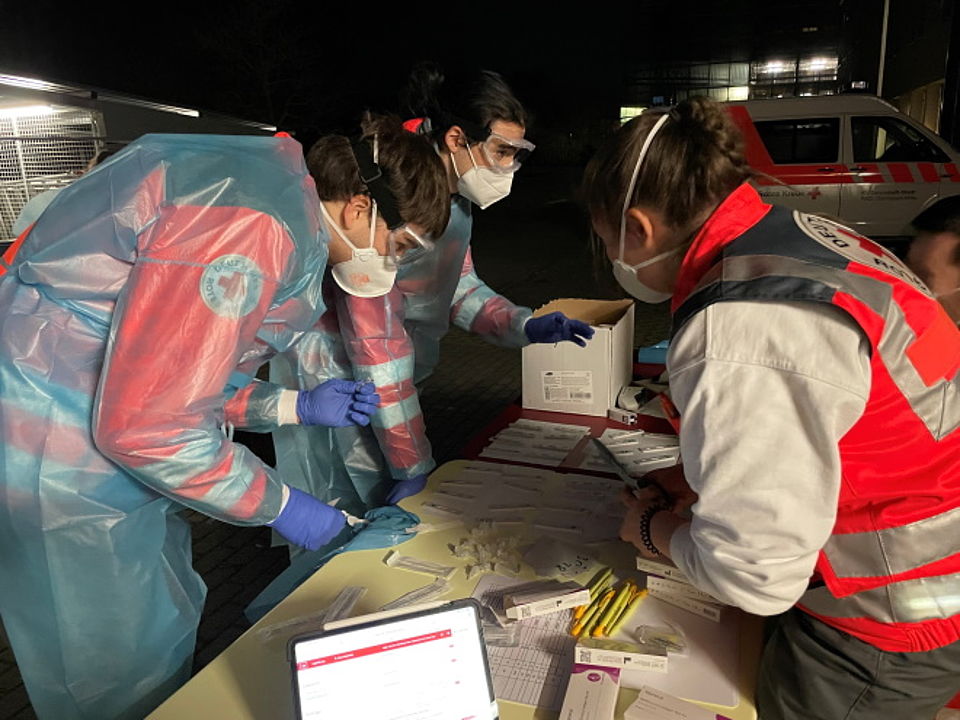 Am Donnerstagabend erreichte das Deutsche Rote Kreuz in Darmstadt einen Hilferuf des Darmstädter Greet Hotels: 50 geflüchtete Menschen aus der Ukraine, von Kleinkindern bis zu hoch Betagten, wurden erwartet. „Da Einsätze, die den Ukraine-Konflikt betreffen, vom DRK-Landesverband Hessen in Wiesbaden genehmigt sind, konnten elf ehrenamtliche Einsatzkräfte des DRK Darmstadt Freitagnacht direkt formlos humanitäre Hilfe leisten und das Hotel-Team beim Empfang der Geflüchteten unterstützen“, sagten Marcel Büchner und Manuel Kamp, Verantwortliche für das Krisenmanagement (VKM) des DRK-Kreisverbands Darmstadt Stadt e. V. Die Menschen wurden registriert und auf Covid getestet. Medizinische Notwendigkeiten wurden ermittelt und den Ankommenden wichtige Informationen über Corona-Maßnahmen, Brandschutz und wichtige Notrufnummern ausgehändigt. Drei Einsatzkräfte sprechen Ukrainisch und halfen beim Dolmetschen. Der Einsatz dauerte rund vier Stunden.