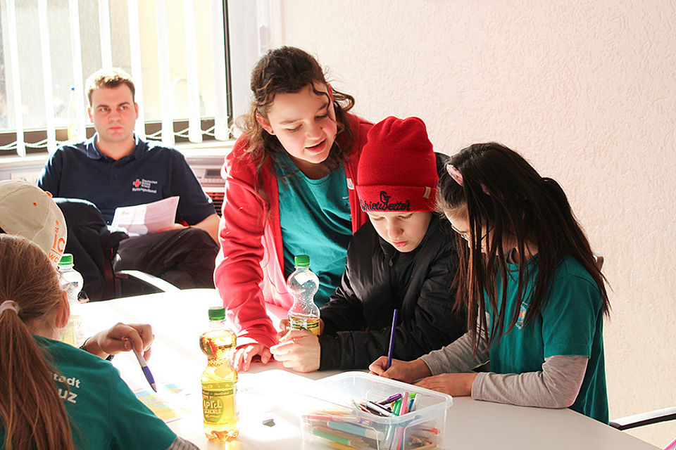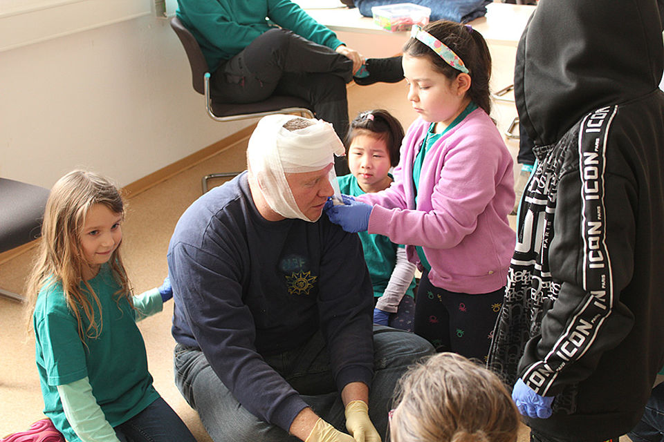 Am Ende hat der diesjährige JRK-Kreiswettbewerb wieder einmal gezeigt, wie gut schon Kinder Erste Hilfe leisten können. Sie ermitteln wie kleine Profis, ob ein Unfallopfer ansprechbar ist, setzen den Notruf ab, schützen mit Rettungsdecken vor Unterkühlung, ziehen Schutzhandschuhe an, bevor sie die realistisch aussehenden Wunden versorgen.